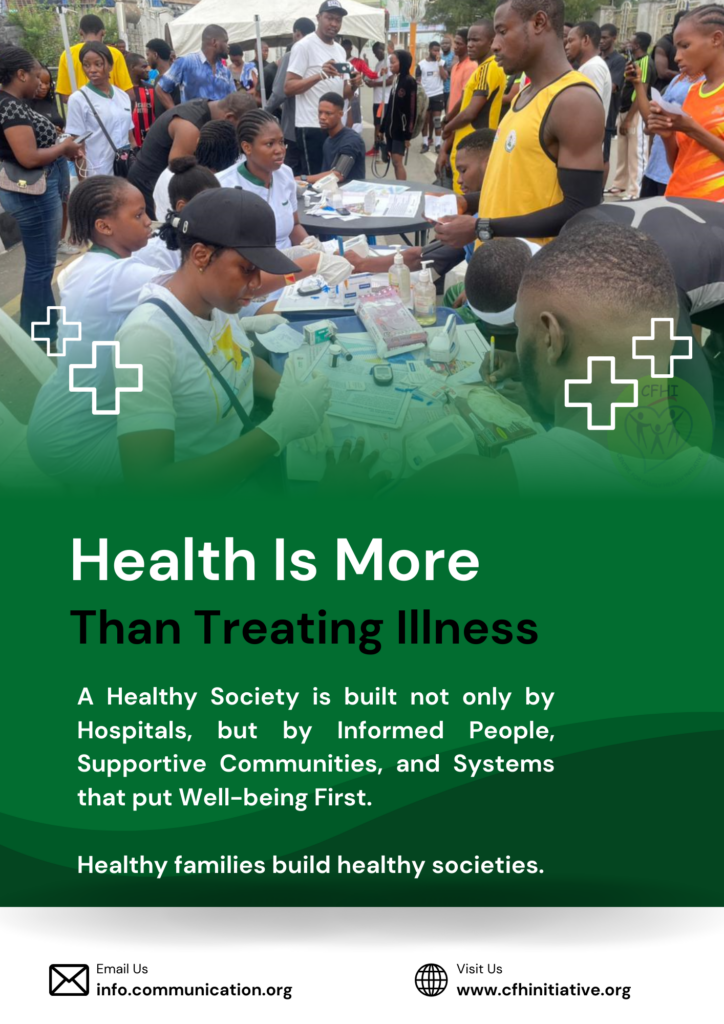 Call to Action: If health is truly more than treating illness, then governments, health institutions, civil society organizations, and communities must invest in prevention, awareness, and social support systems. Strengthening health education, promoting early screening, improving water and sanitation, addressing gender and social inequalities, and empowering communities with knowledge are critical steps toward sustainable health outcomes. Treating illness saves lives but preventing illness and promoting well-being transforms societies.