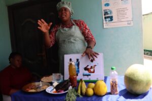 Participants were actively engaged in discussions on how commonly available food items within the community can be combined to achieve a balanced diet and improve overall family health outcomes.